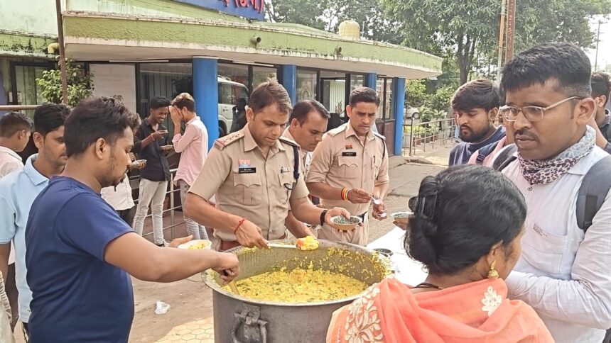 “सावन के अंतिम सोमवार पर कोतरारोड़ पुलिस बनी श्रद्धालुओं की सेवा का प्रतीक, पुलिसकर्मियों ने थाना परिसर में श्रद्धालुओं में किया प्रसाद वितरण”